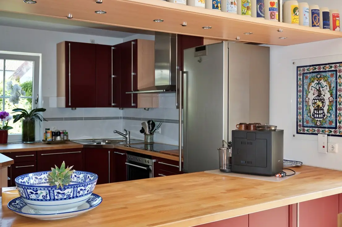 - offene Küche (EBK) – Fußbodenheizung und Küchenrückwand gefliest