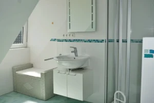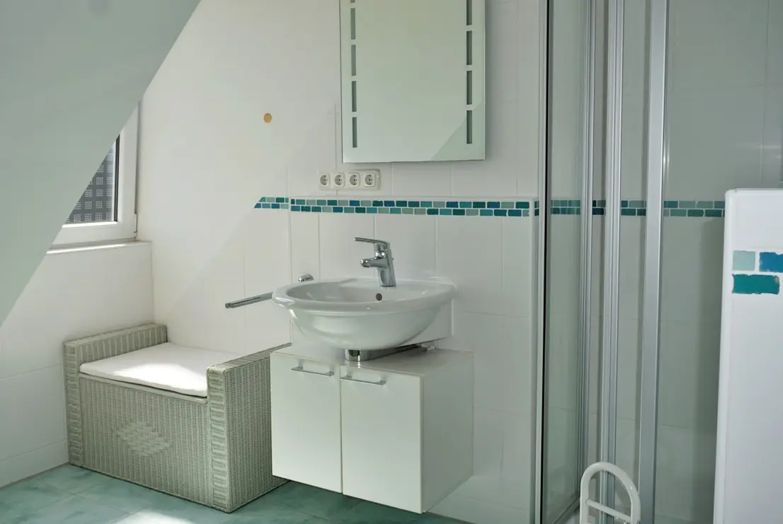 •Bad mit Waschbecken, Dusche und WC